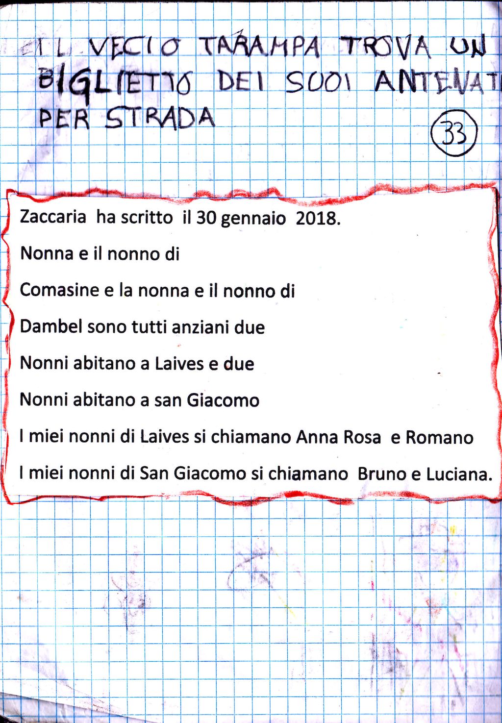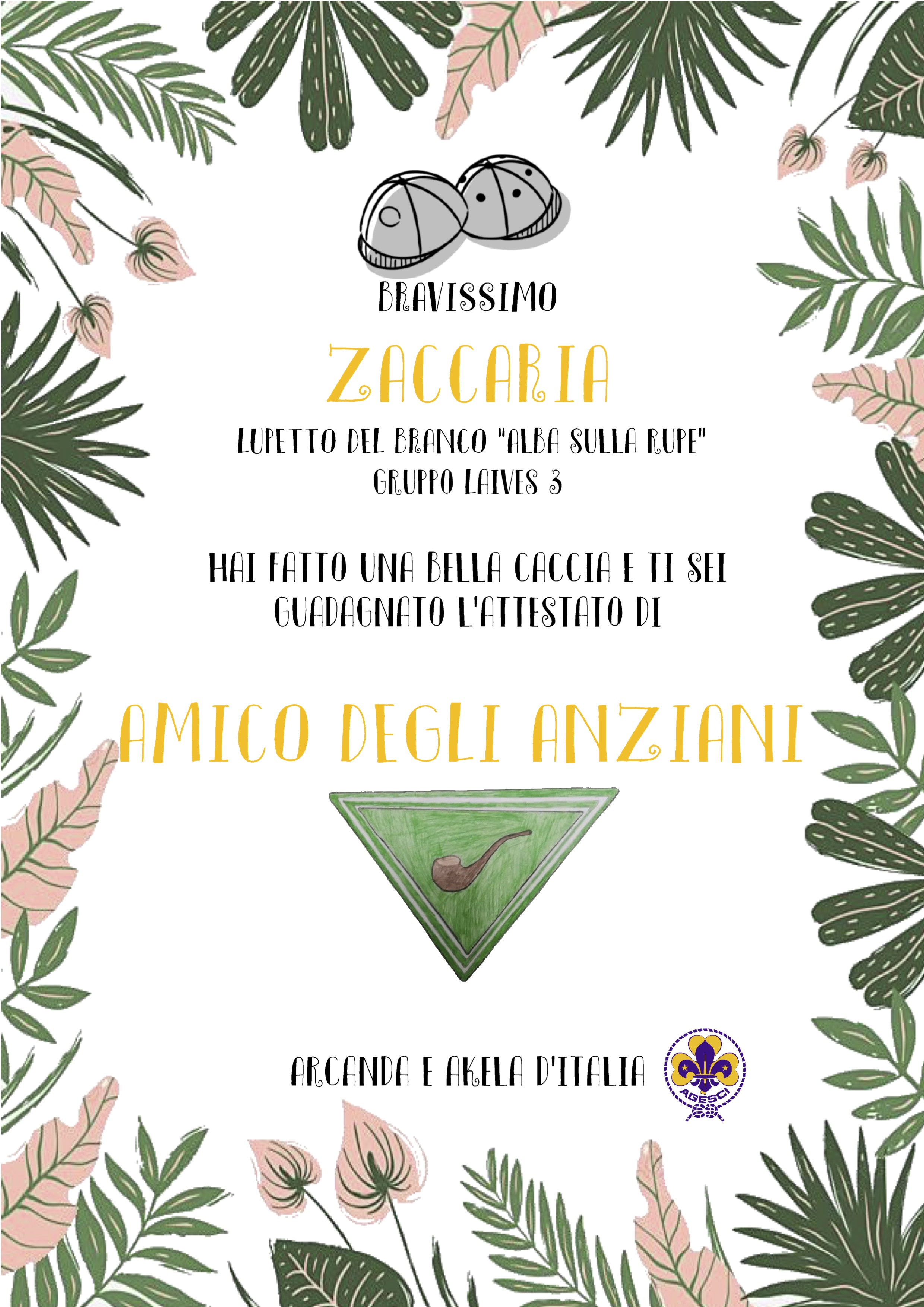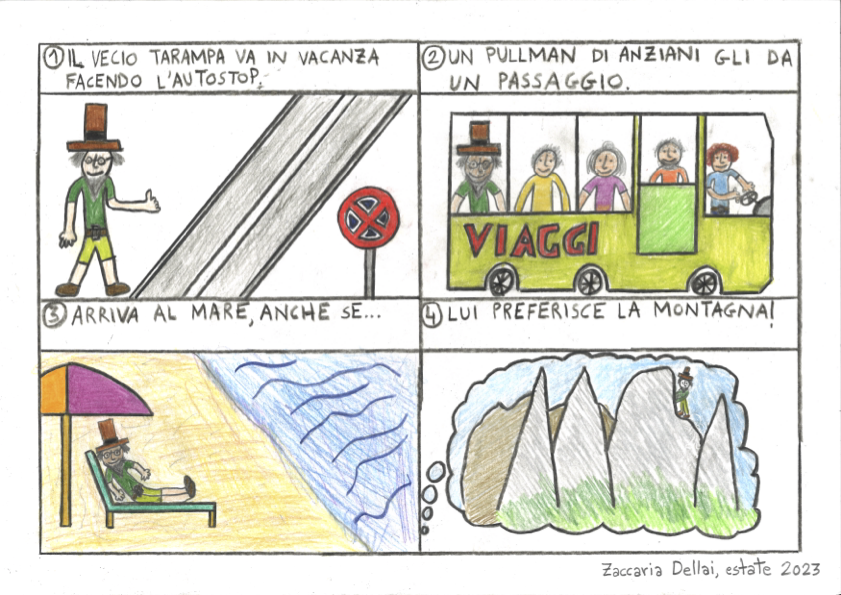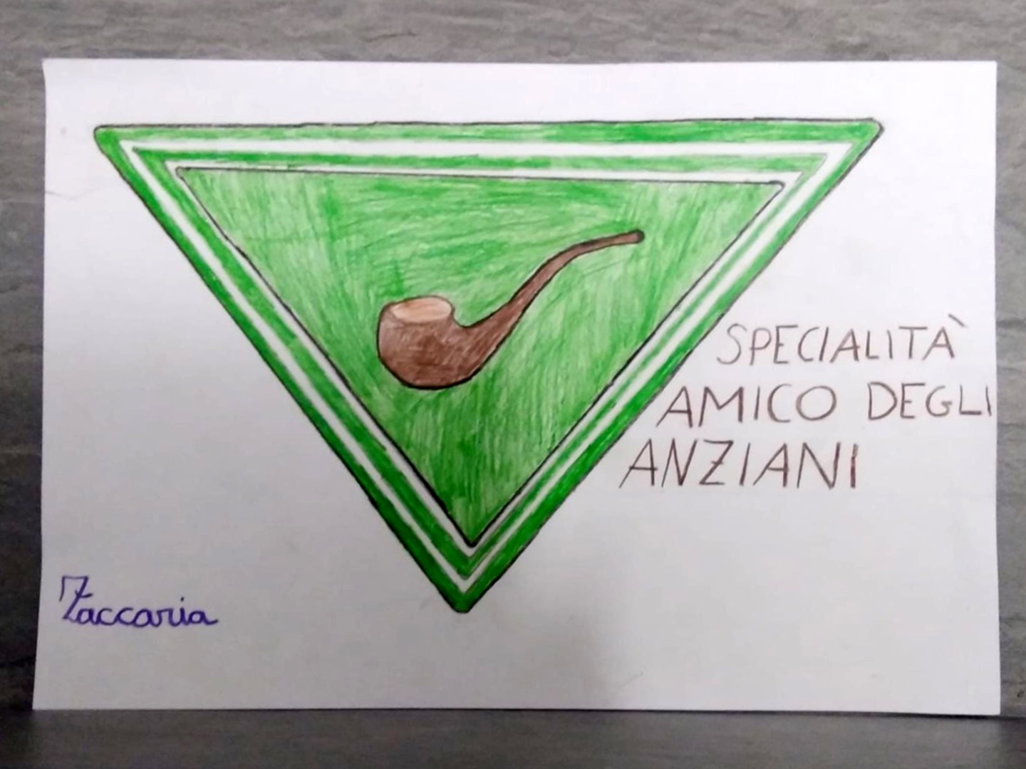 Zaccaria è un bambino socievole, sensibile, altruista che da sempre mostra attenzione verso le persone anziane, che considera come le sue "radici". Con la sua vivace fantasia ha inventato un personaggio, "Il vecio tarampa", che ha reso protagonista di storie semplici, maturate e arricchite negli anni e raccolte in un sito internet. La sua amicizia con le persone anziane ha avuto modo di esprimersi anche all'interno dell'Agesci, dove Zaccaria ha creato una nuova specialità, "Amico degli anziani", e con intraprendenza non comune, considerata la sua età, ha scritto agli incaricati nazionali della branca Lupetti e Coccinelle proponendo di inserire la specialità nel novero di quelle che tutti i lupetti e le coccinelle possono scegliere per la propria attività scoutistica.