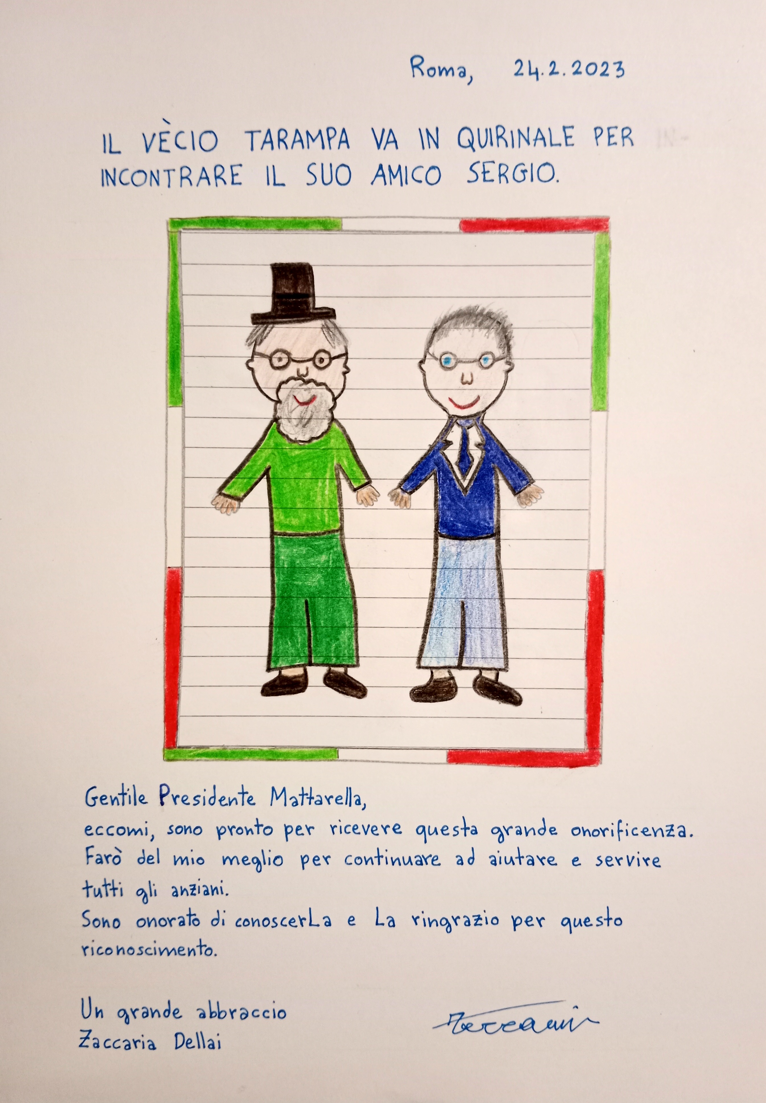 Disegno e messaggio per il Presidente della Repubblica Italiana