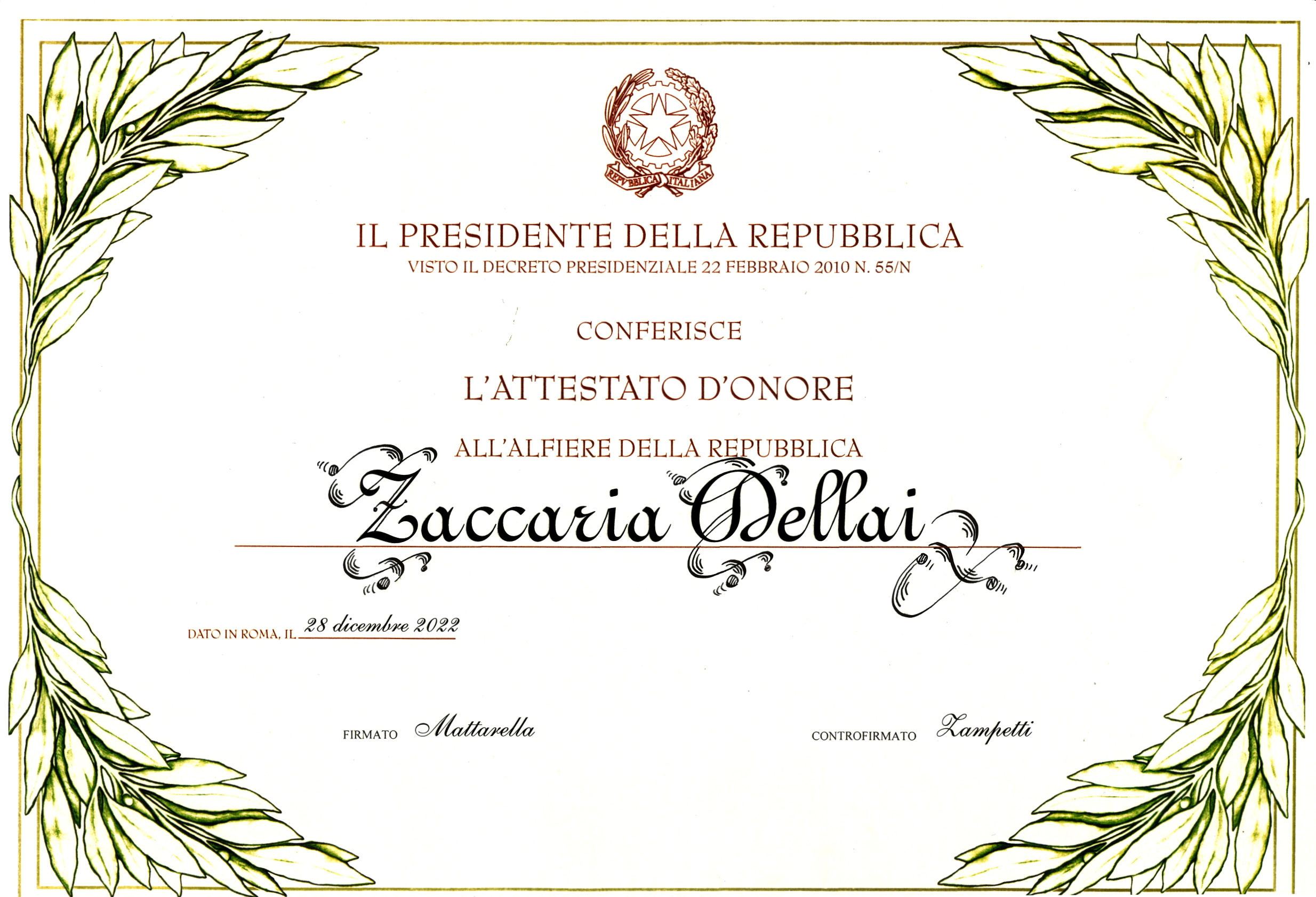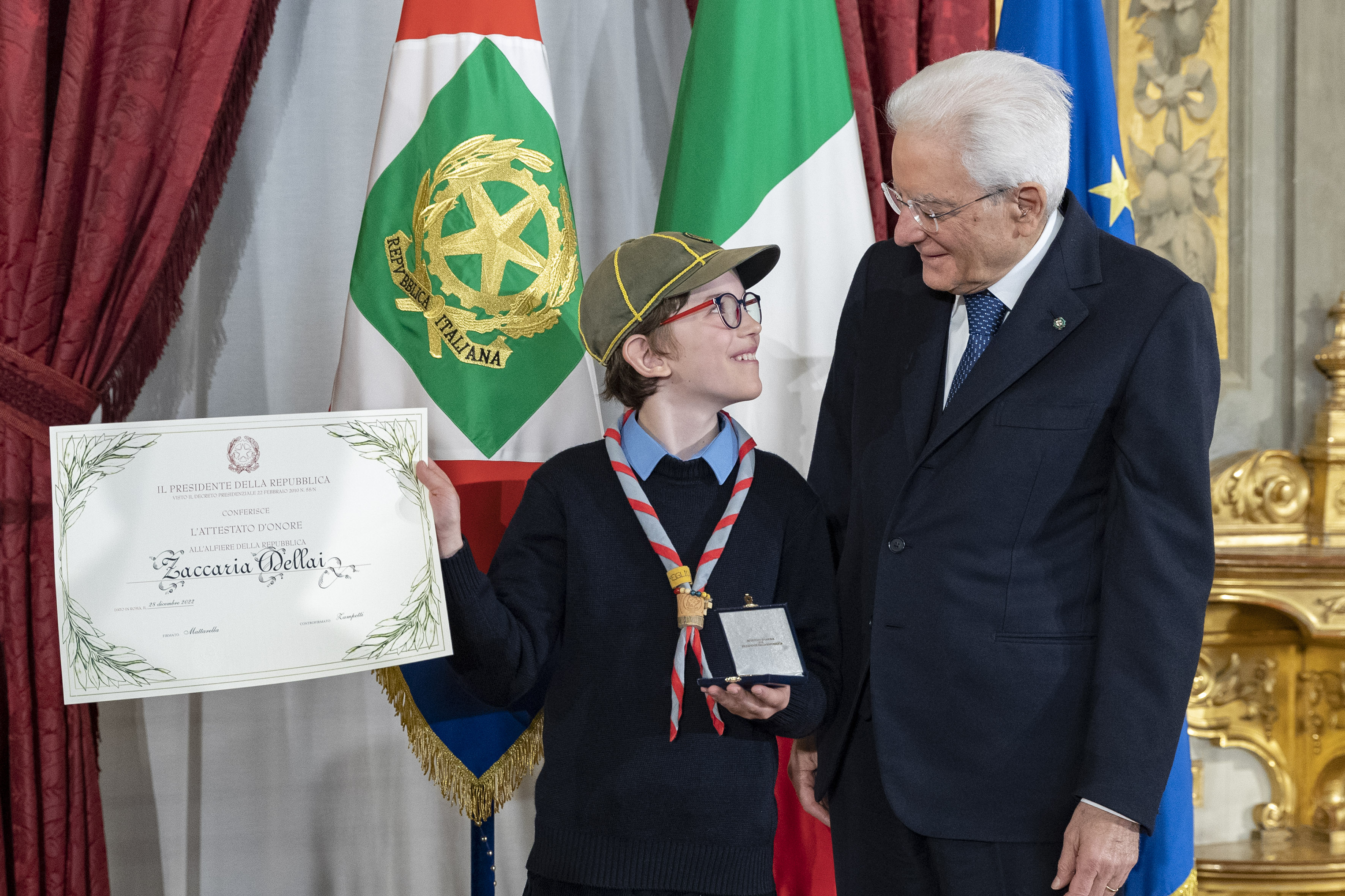 Link YouTube: Consegna degli Attestati d'Onore di Alfiere della Repubblica conferiti nell'anno 2022Zaccaria e Sergio Mattarella